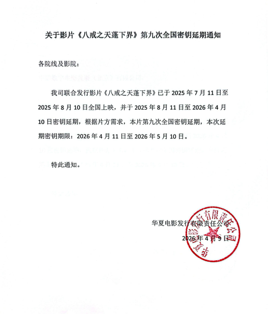 关于影片《八戒之天蓬下界》第九次全国密钥延期通知