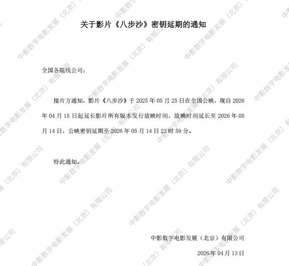 《八步沙》第11次密钥延期的通知