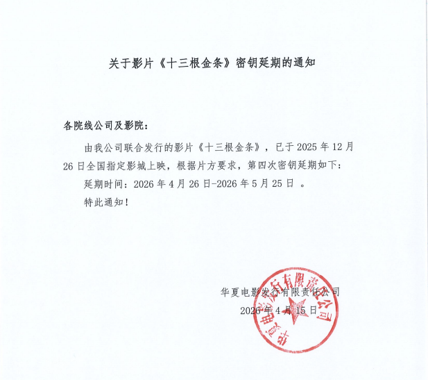 《十三根金条》第四次密钥延期的通知