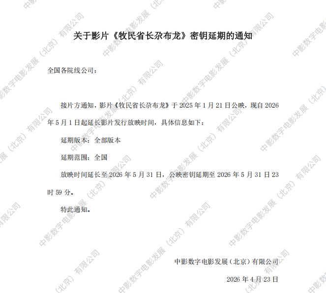 《牧民省长尕布龙》第十五次密钥延期的通知
