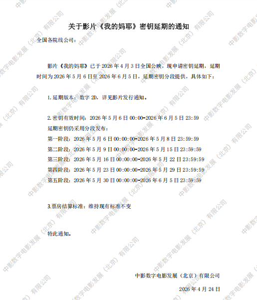 《我的妈耶》密钥延期的通知