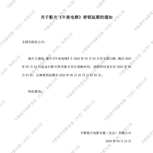 《午夜电梯》密钥延期的通知