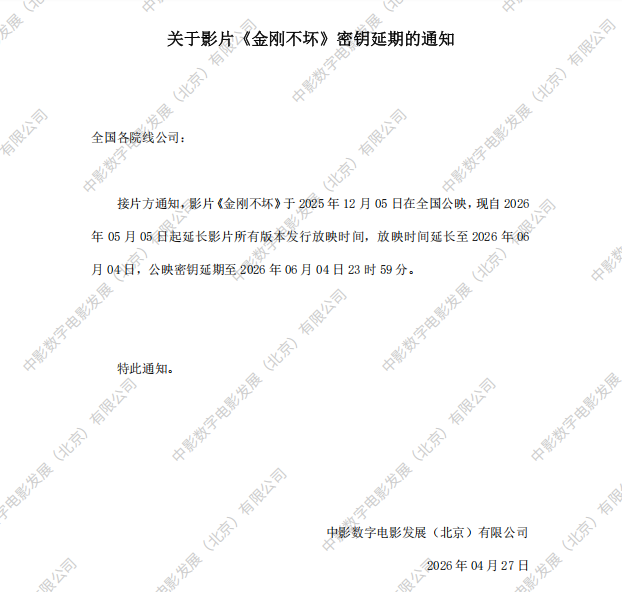 《金刚不坏》第五次密钥延期的通知