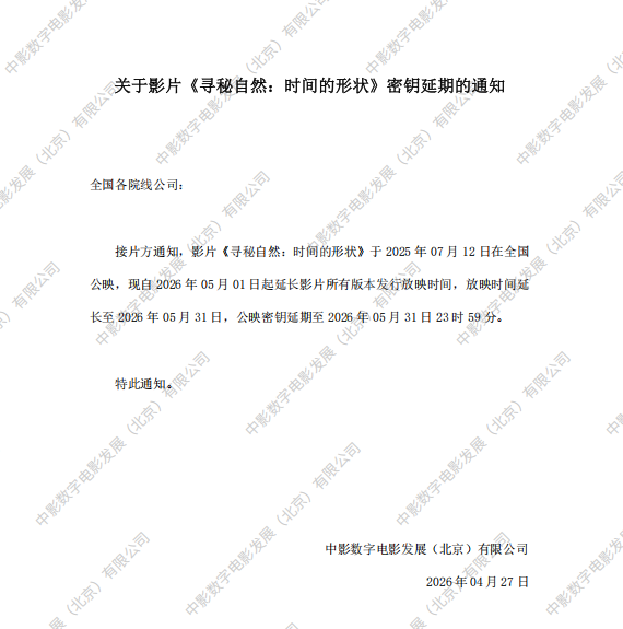 《寻秘自然:时间的形状》第十次密钥延期的通知