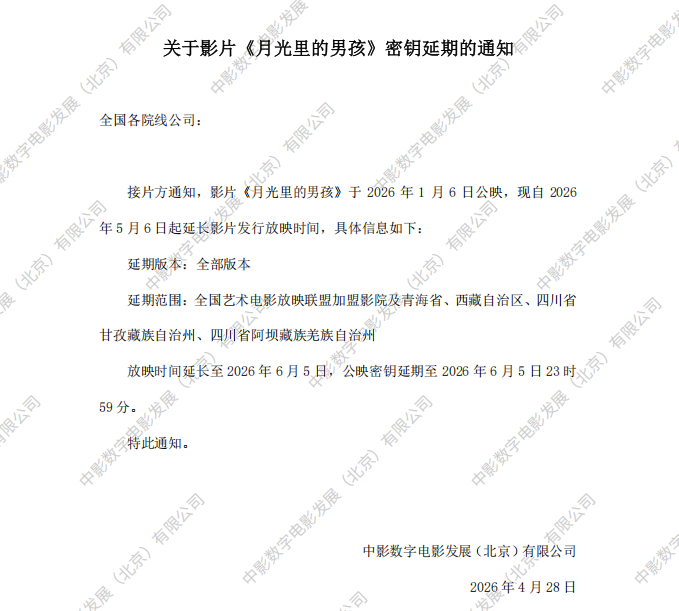 《月光里的男孩》第四次密钥延期的通知